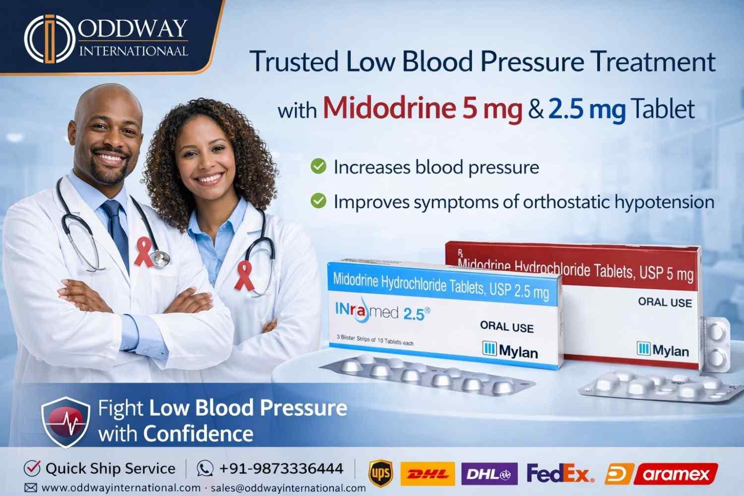 Exporters who meet international standards distribute Midodrine Tablets to markets all over the world. Oddway International functions as a top pharmaceutical exporter which supplies authentic medicines to healthcare organizations and distribution networks throughout the Philippines while guaranteeing product supply and authenticity verification and operational support for the medical industry.