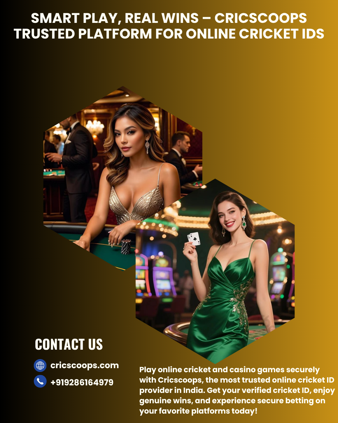 Simply contact Cricscoops on +919286164979, and you’ll receive your verified online cricket or casino ID instantly.