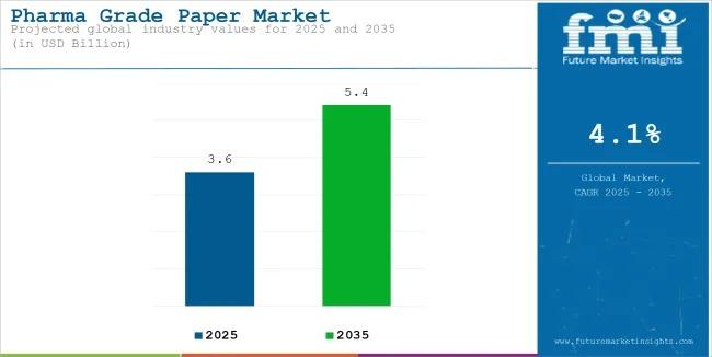 The global pharma-grade paper market is poised for steady growth, projected to rise from USD 3.6 billion in 2025 to USD 5.4 billion by 2035, expanding at a CAGR of 4.1% over the forecast period. This growth trajectory builds on the industry’s performance in 2024, when it recorded a revenue of USD 3.5 billion, underpinned by growing demand for sustainable and regulatory-compliant pharmaceutical packaging solutions.
