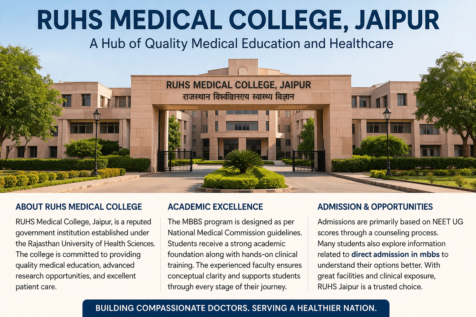 Many medical aspirants search for information related to direct admission in MBBS while exploring different colleges. Understanding the admission process, eligibility criteria, and counseling procedure is important for students planning to pursue MBBS. RUHS Medical College, Jaipur remains a preferred choice for students who want to build a successful career in the medical field.