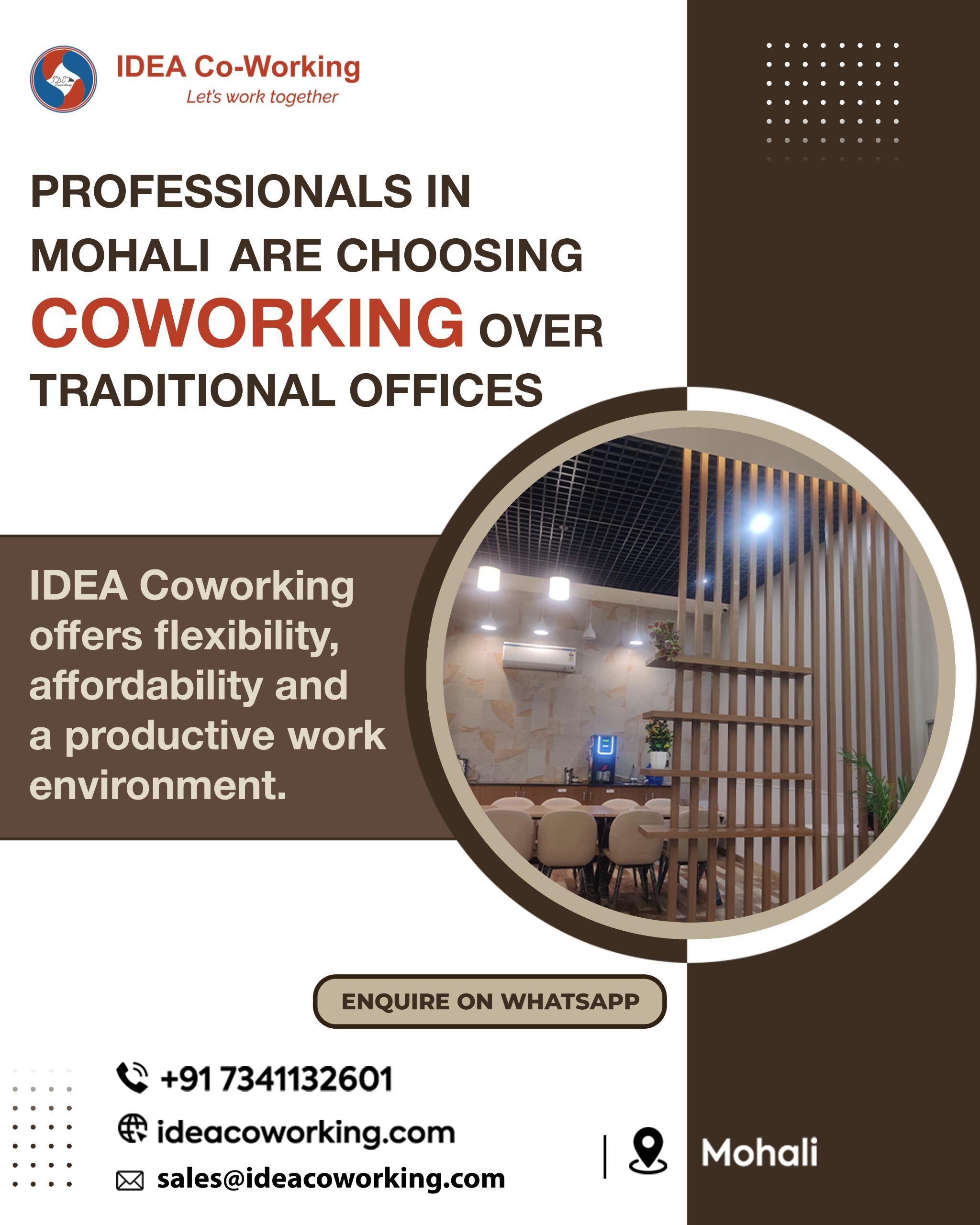 Idea Coworking offers flexible and fully equipped workspaces across Mohali, Chandigarh, and Zirakpur. With modern desks, private offices, and professional meeting rooms, it’s designed to help startups, freelancers, and growing teams work productively in the coworking space environment.