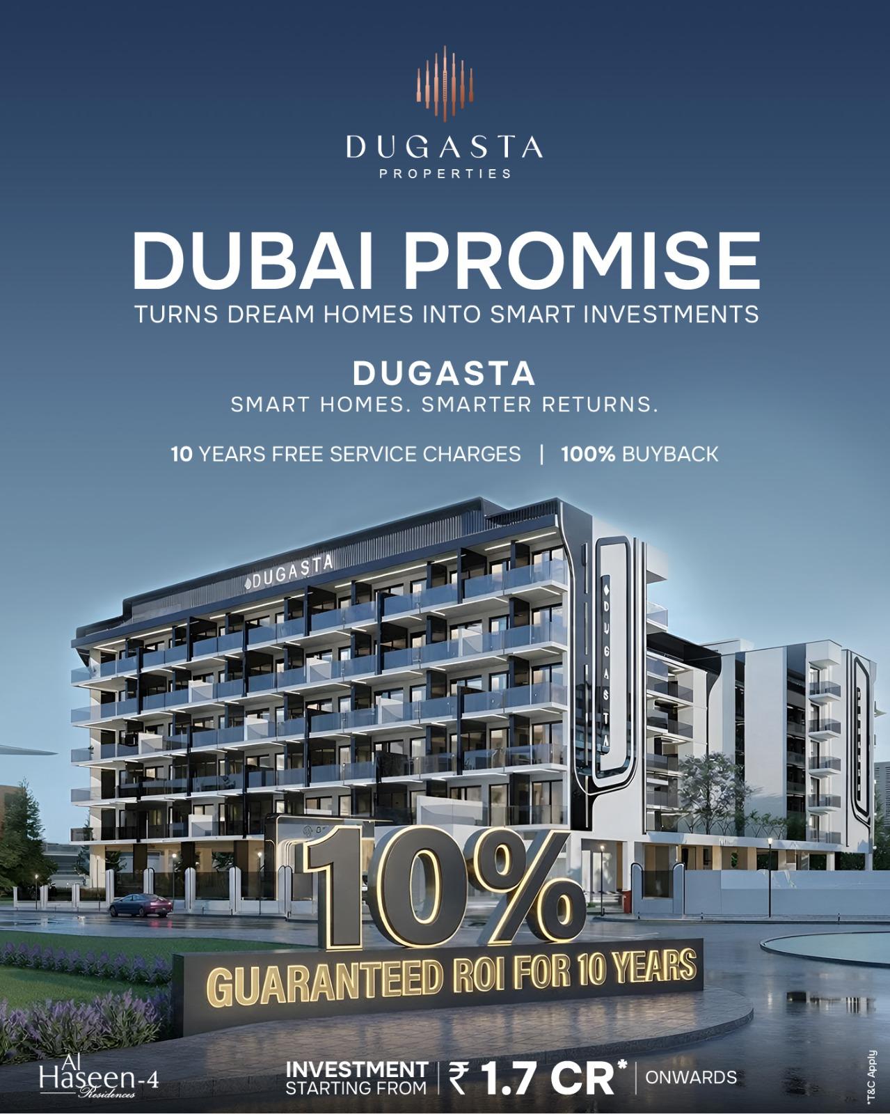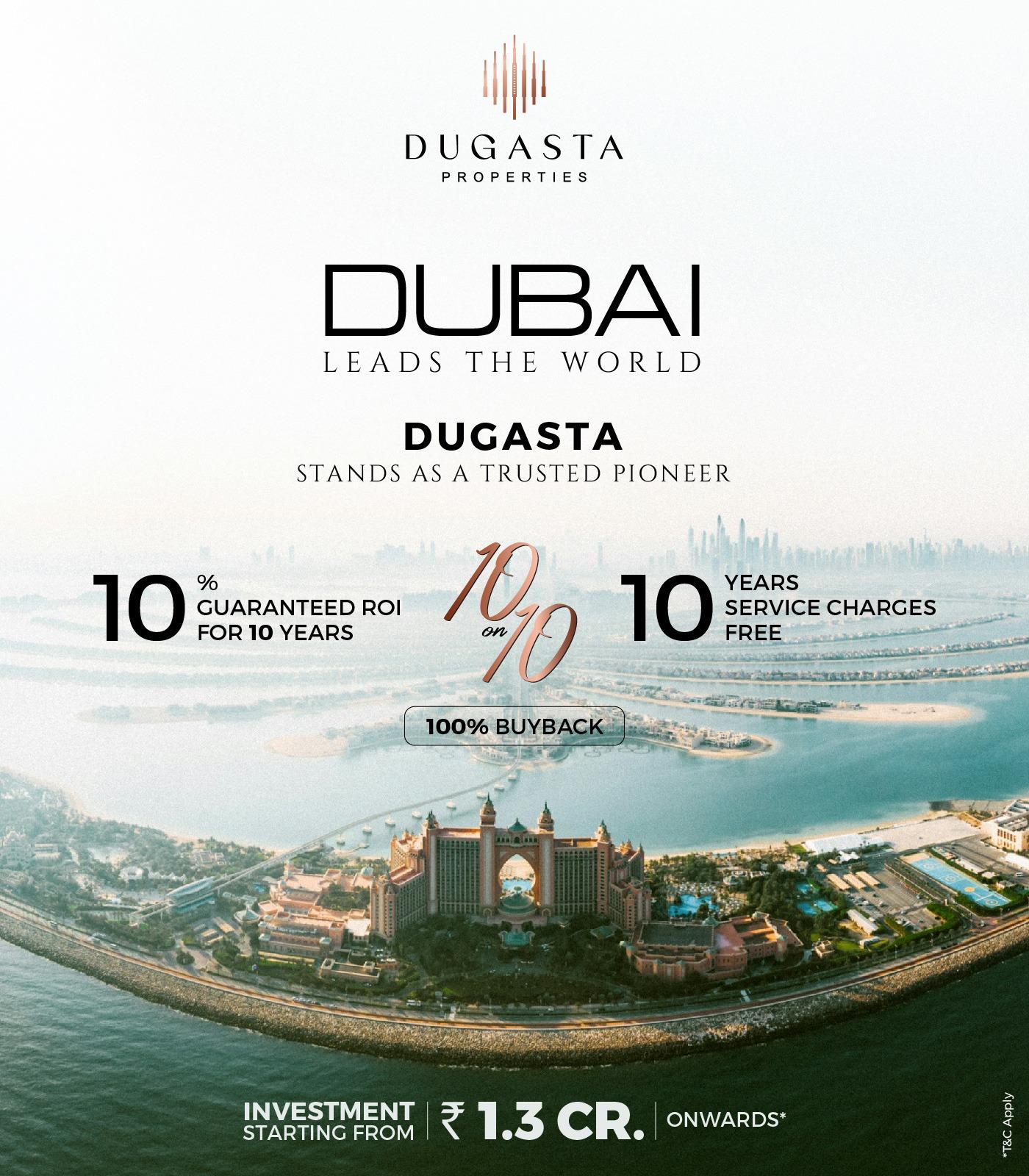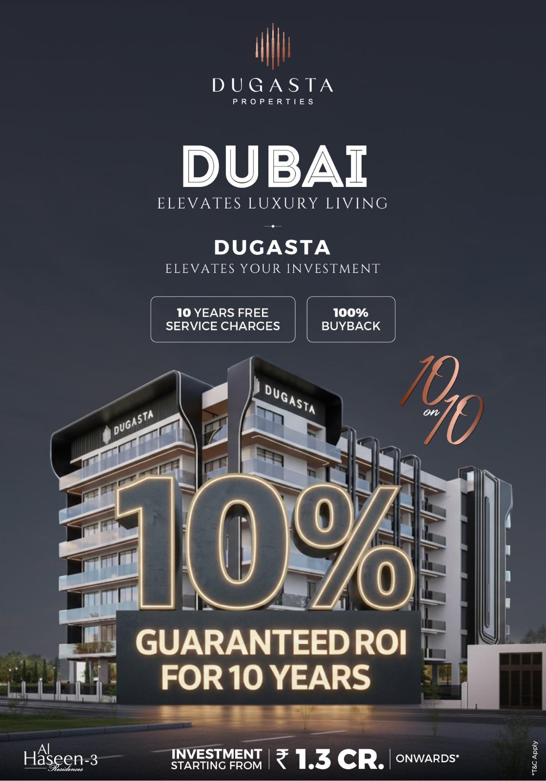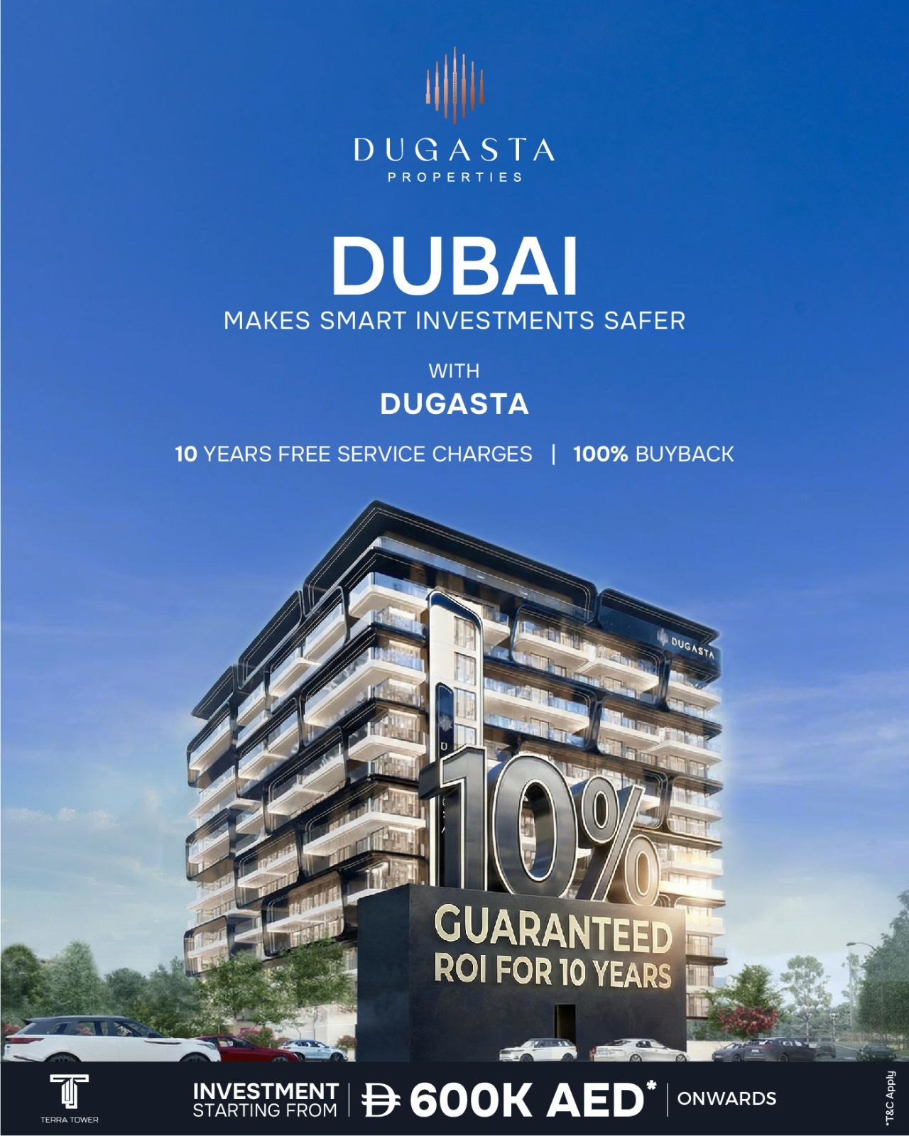 Secure your future with Dugasta Properties in Dubai. Earn 10% net ROI for 10 years, enjoy 10 years free service charges and a 100% buyback guarantee. Invest in premium Dubai real estate designed for steady returns and long-term growth.