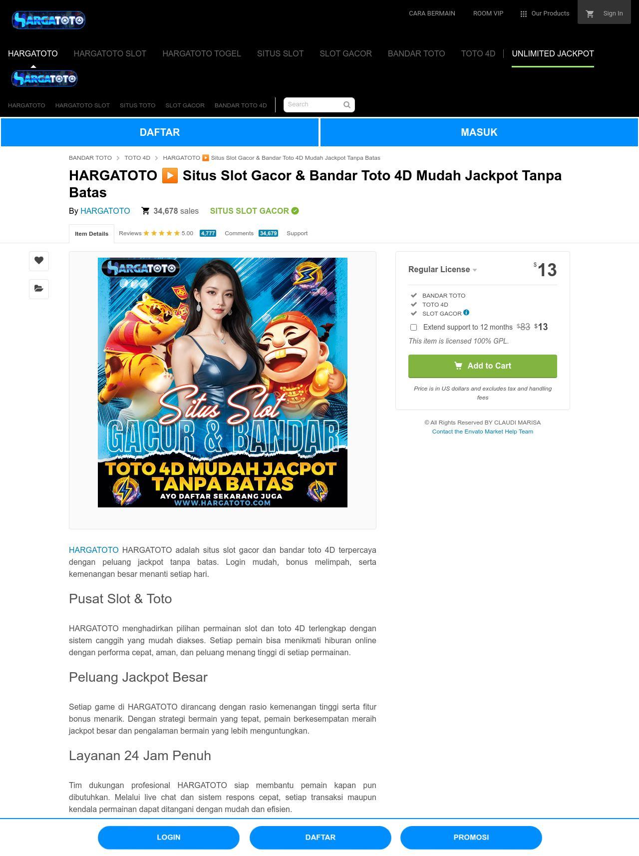 HARGATOTO adalah situs toto slot online 4D terpercaya di Indonesia, menawarkan pengalaman bermain yang aman dan menyenangkan serta pilihan permainan slot gacor