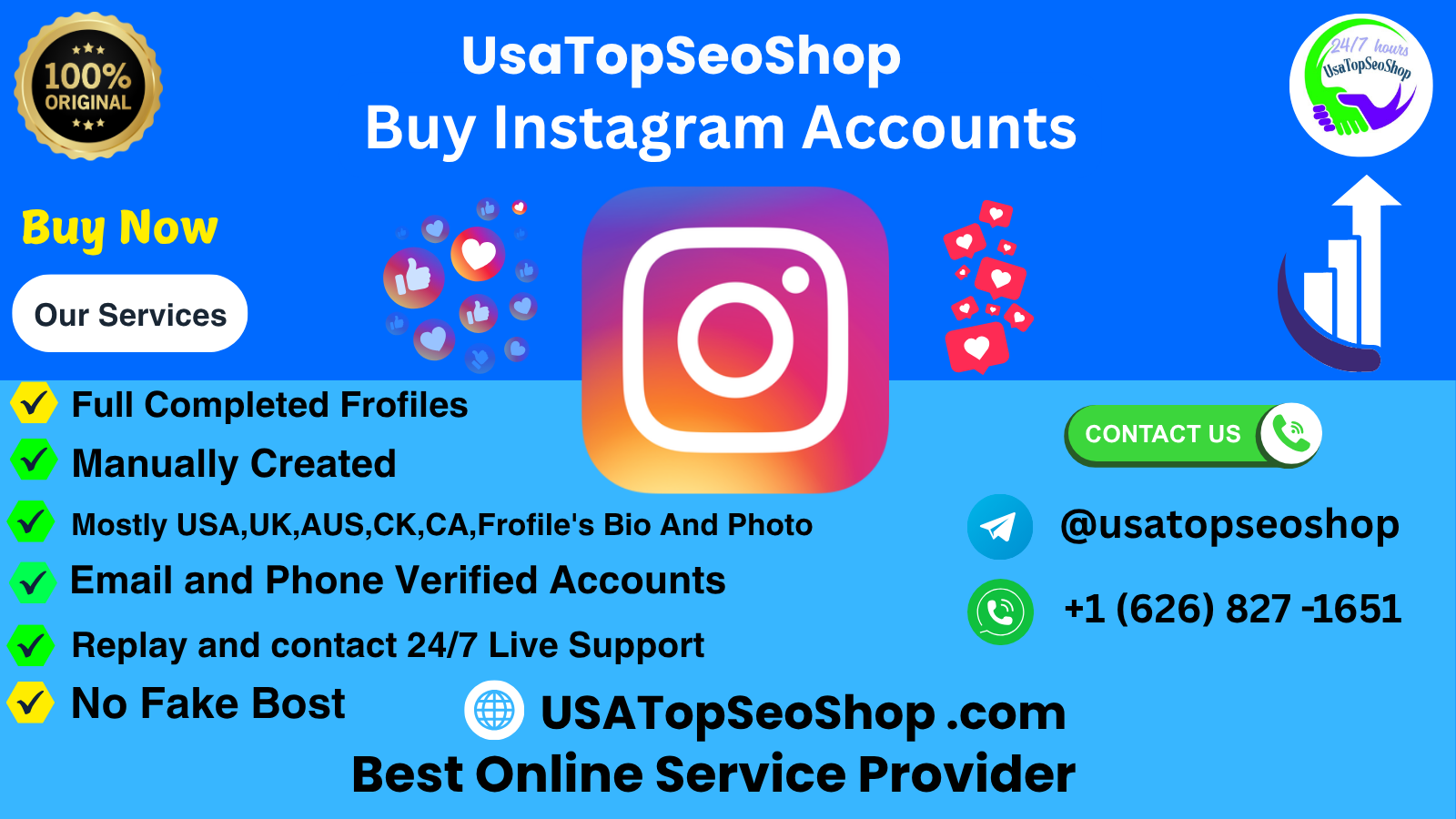 WhatsApp: +1 (626) 827 -1651Buy Instagram Accounts? Buy Instagram accounts with real followers and active engagement to boost your online presence instantly. Perfect for businesses, influencers, and gain instant credibility with aged and verified accounts. Secure delivery, full access, and affordable prices guaranteed. Start your Instagram journey with a strong foundation and real results. Our Instagram Accounts Features ➤ Real, active followers for genuine engagement ➤ Premium Quality Instagram Accounts ➤ Safe for Pages & Brands ➤ 100% Real & Fully Verified Users ➤ Instant Delivery ➤ 24/7 Support Available Buying Instagram accounts can boost your social media presence quickly. Choose reputable sellers to ensure account legitimacy. In today’s digital age, Instagram has become a powerful platform for businesses and influencers. Buying Instagram accounts can offer an immediate boost in followers, engagement, and visibility. This strategy can save time and effort in building a new account from scratch. If you want to more information just contact now here 24 Hours Reply/Contact Email: usatopseoshop@gmail.com Telegram: @usatopseoshop Skype: USTop SeoShop WhatsApp: +1 (626) 827 -16510 Комментарии 0 Поделились 22 Просмотры 0 предпросмотрВойдите, чтобы отмечать, делиться и комментировать! -